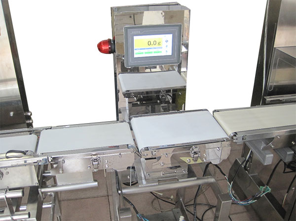 對小包裝物進行重量復檢,超出誤差的由氣缸自動剔除,可以滿足1000袋/小時的產能。